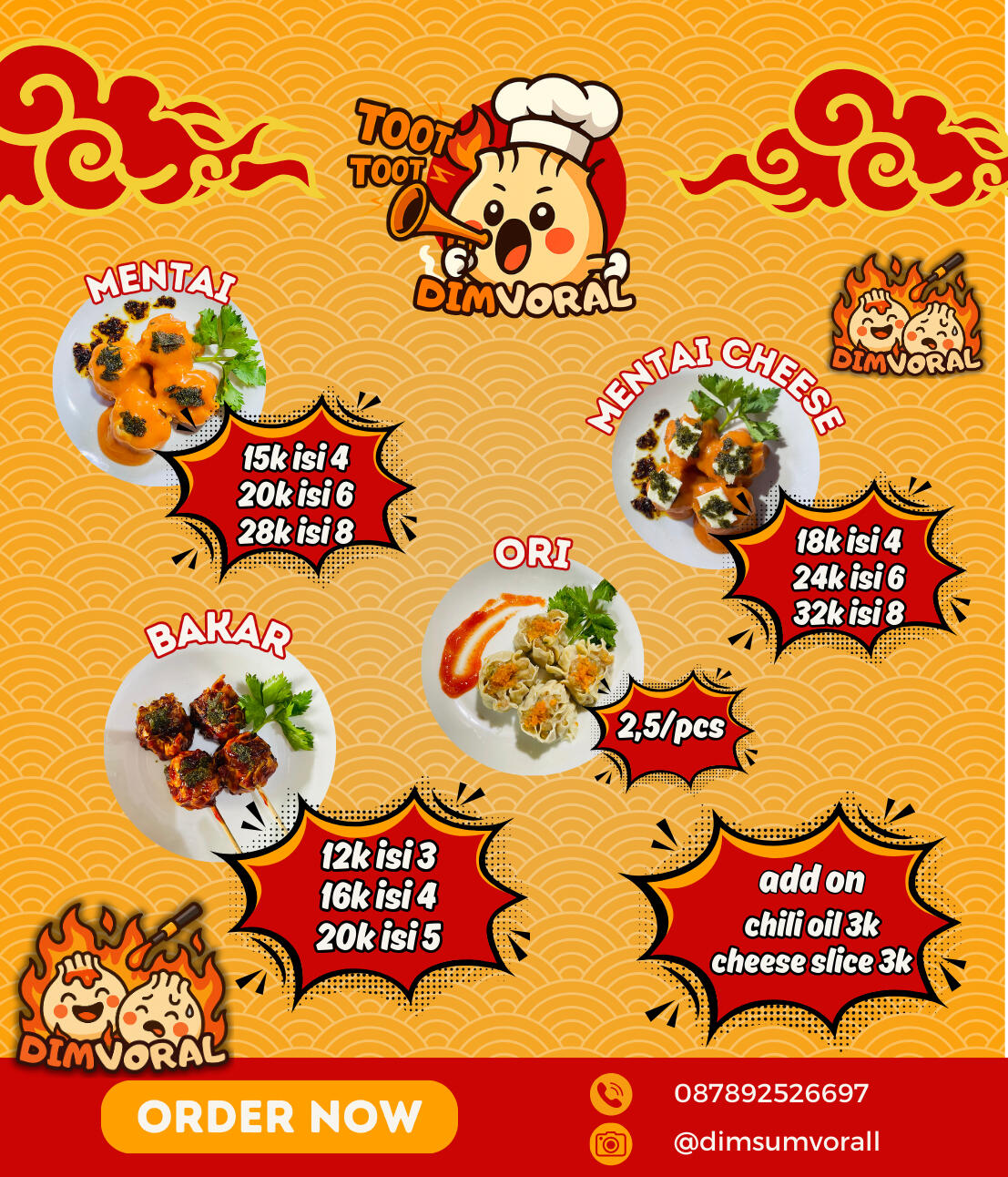 Dimsum Vorall telah memiliki legalitas resmi dan terdaftar secara hukum, sehingga beroperasi secara sah dan terpercaya. Dengan status usaha yang resmi, Dimsum Vorall siap melayani pelanggan secara luas. Kami melayani pembelian individu dengan pilihan dimsum siap santap maupun frozen, serta pemesanan dalam skala besar sebagai supplier untuk event, usaha kuliner, restoran, dan berbagai kebutuhan lainnya.